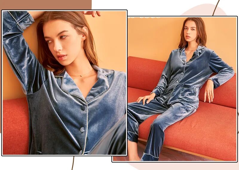 保暖天鹅绒的家居服两件套直接套件大衣,外穿都没问题,浓浓法式慵懒氛围~