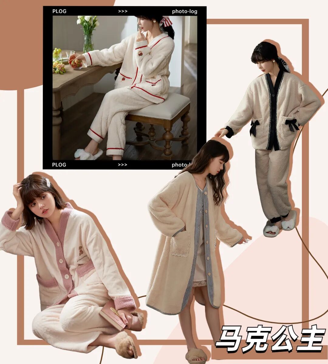 厚睡衣的款式不算多,但胜在设计在线,而且法兰绒的看起来贼有质感,还不显臃肿!
