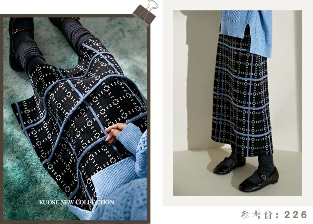 下面搭配一条A字廓形的半身裙,蓝色四方格花纹图案个性又吸睛,非常的独特,一整个爱住!