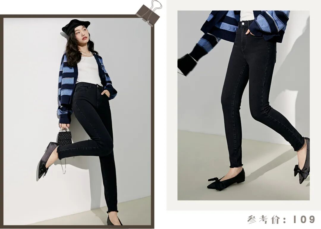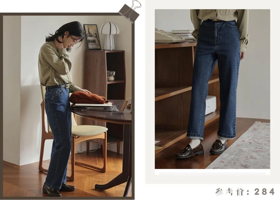 下面再穿一条同色系牛仔裤,小直筒裤型简洁利落,非常修饰腿型,显瘦100分,轻轻松松让你get到休闲的时髦感!
