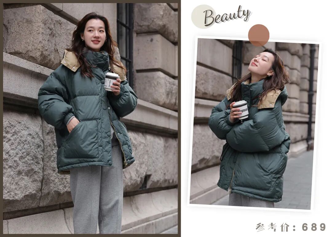 比较冷的地区,还是老老实实穿羽绒服吧,这件可以双面穿的羽绒服也太绝了,可盐可甜,双面设计+连帽的可拆卸设计,可谓是把穿搭的多样性做到了极致,一件衣服N种穿法,也太值了!