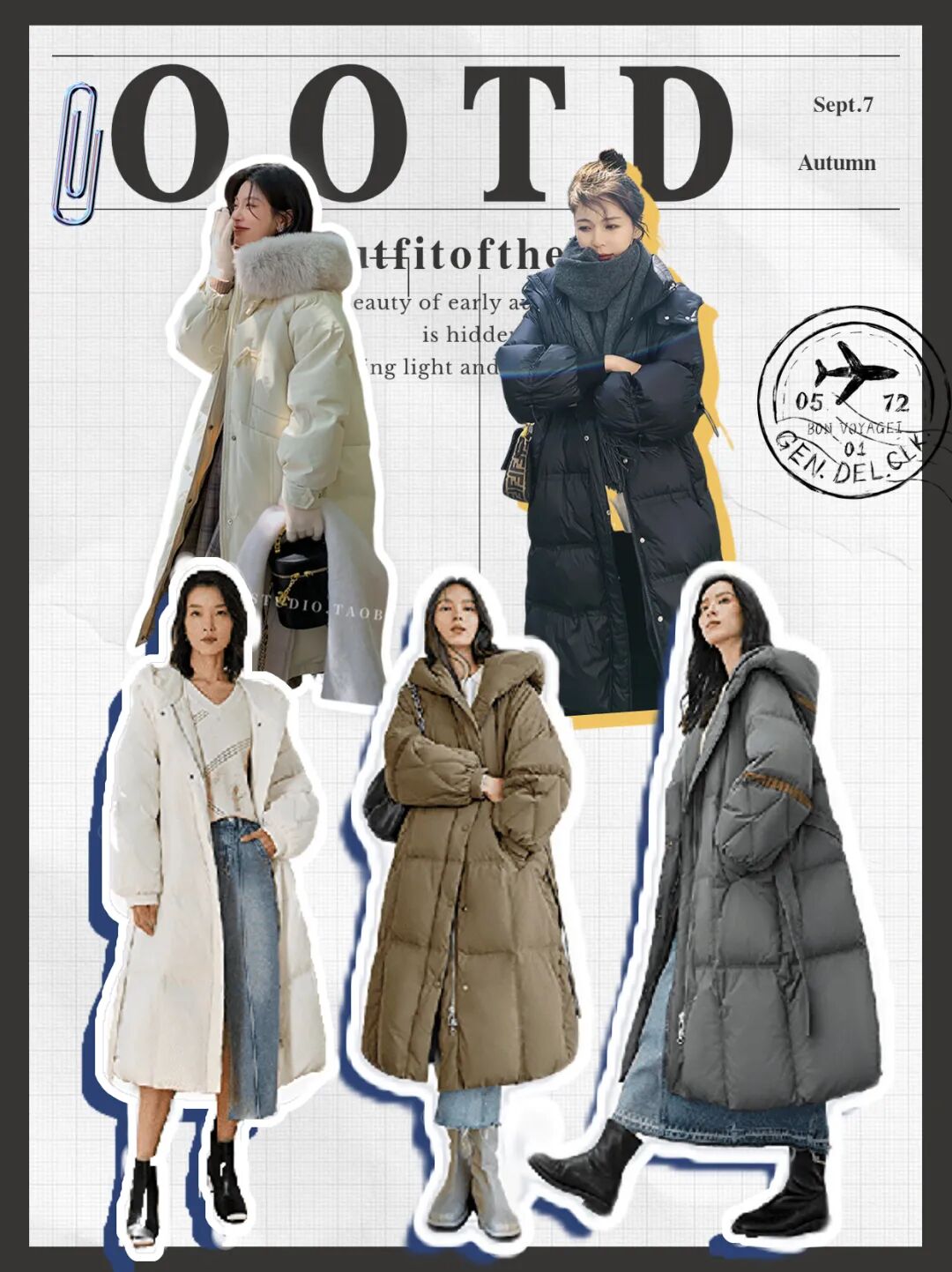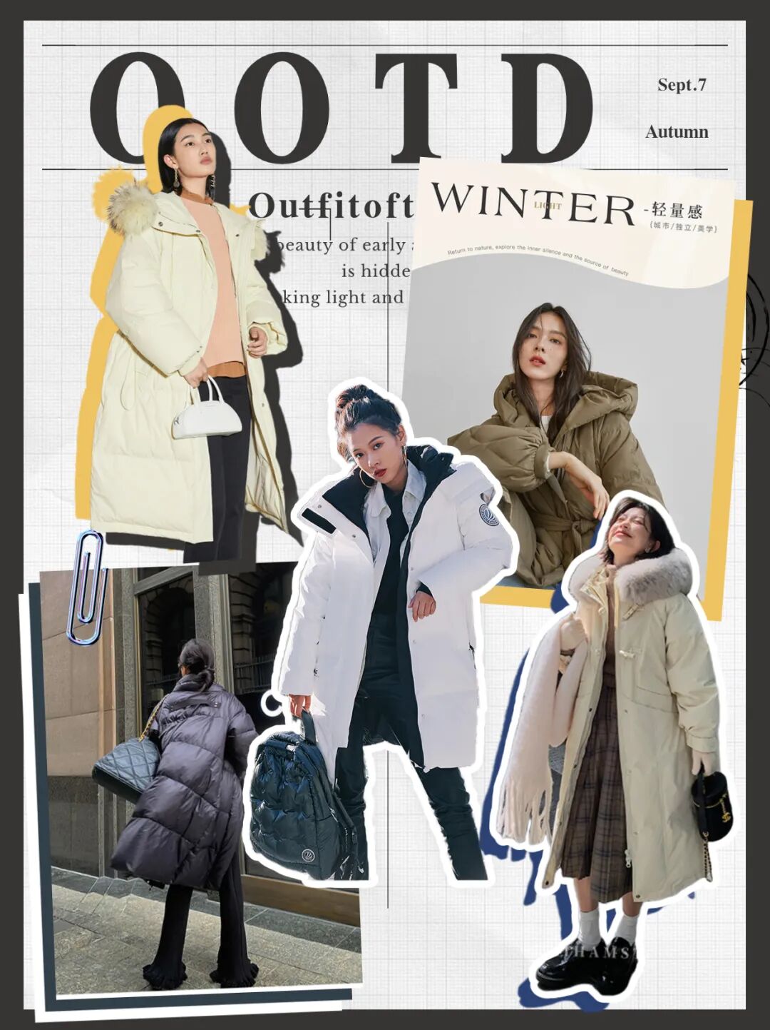 长款羽绒服在穿搭上无需讲究太多技巧,只要外套选的好看,基本都不出错~