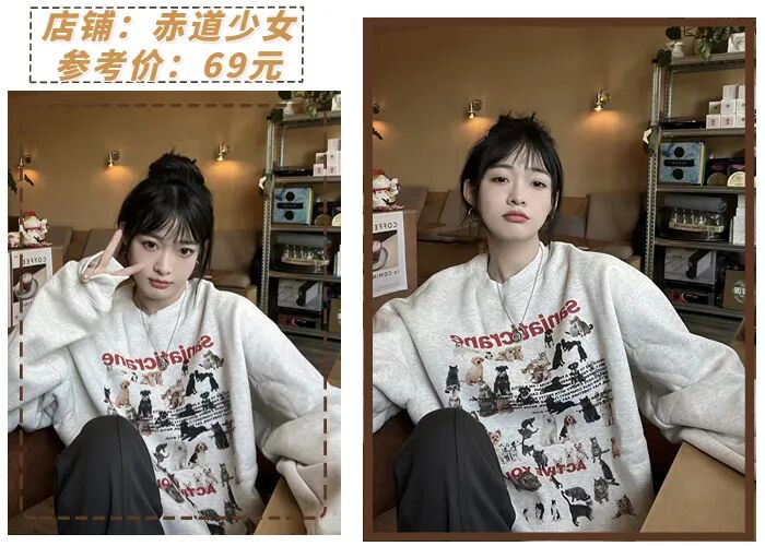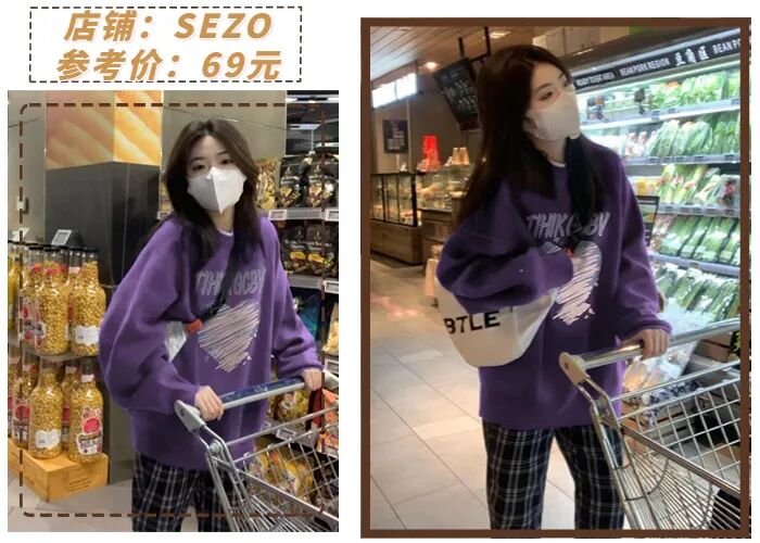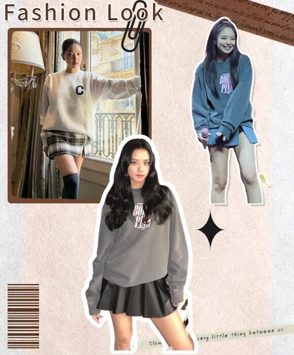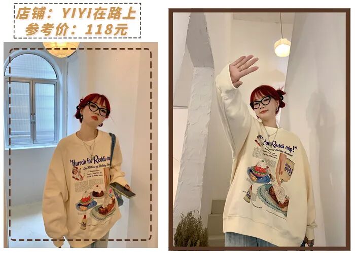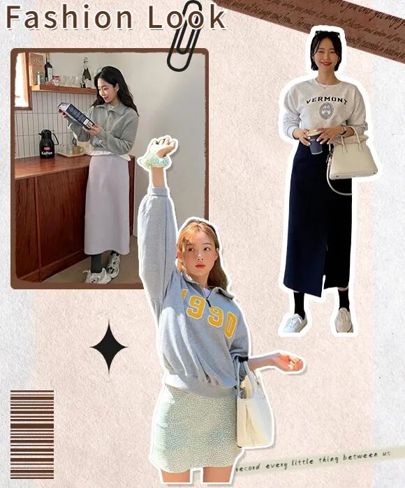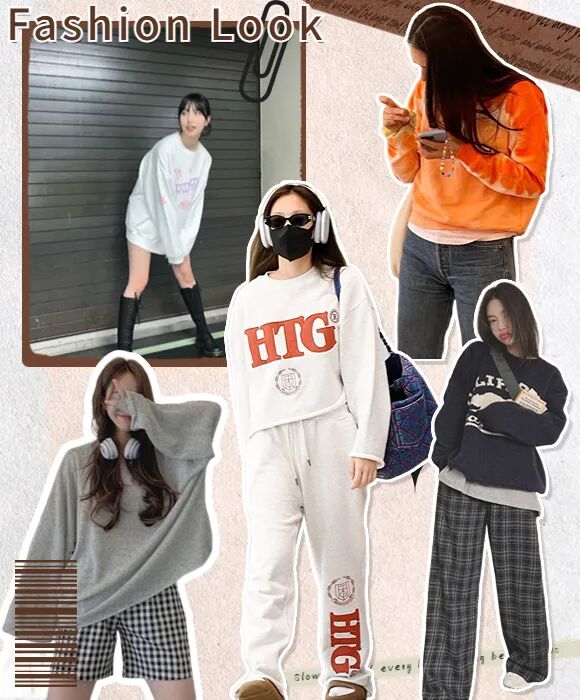 圆领卫衣材质比较硬挺,相比于软塌的毛衣更容易穿出型来,也更能藏肉显瘦。圆领卫衣元气青春,轻松穿出女友风~