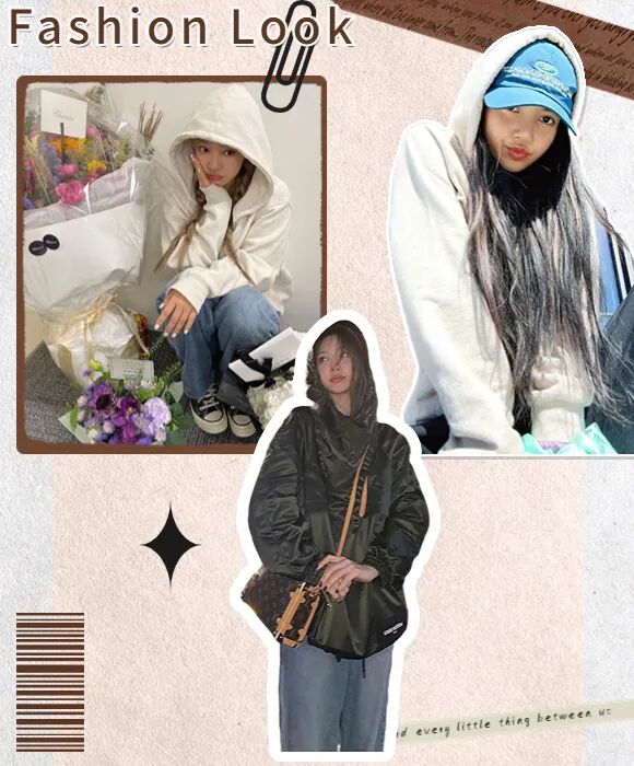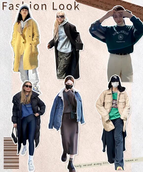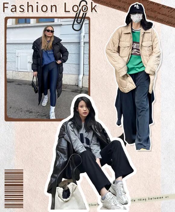 卫衣款式可以跟厚外套相呼应,更有穿搭整体感👇