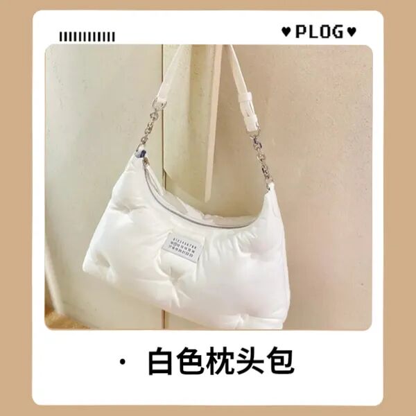 说到枕头包自然跟白色更配,像甜美的云朵棉花糖,上身也特别好搭配!