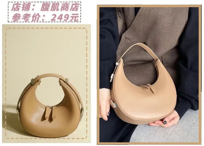 月牙包也是腋下包界的新晋爆款,因为形状酷似月牙而得名。包型圆润可爱,线条十分流畅,风格也可甜可盐。