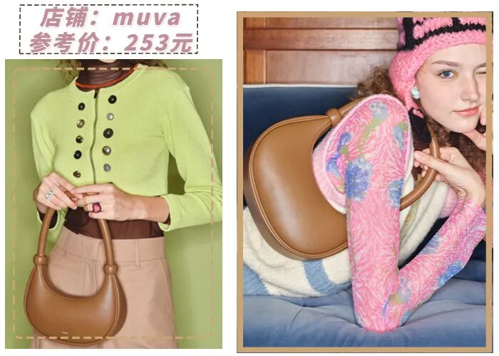 月牙包跟不同材质组合也能碰撞出不一样的火花。