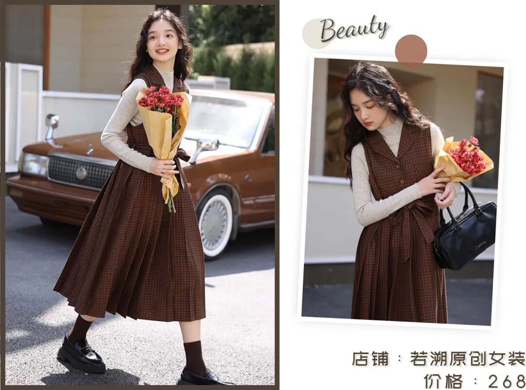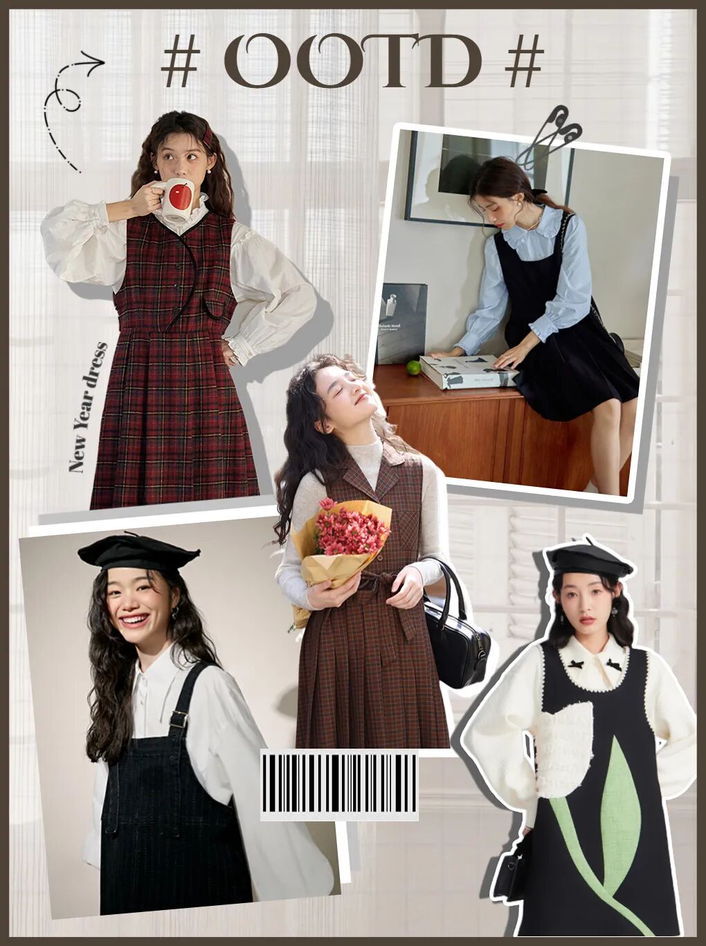 背心裙真的太适合秋冬啦,百搭又显瘦,随便配个衬衫打底就可以了,分分钟让你get到叠穿的快乐!