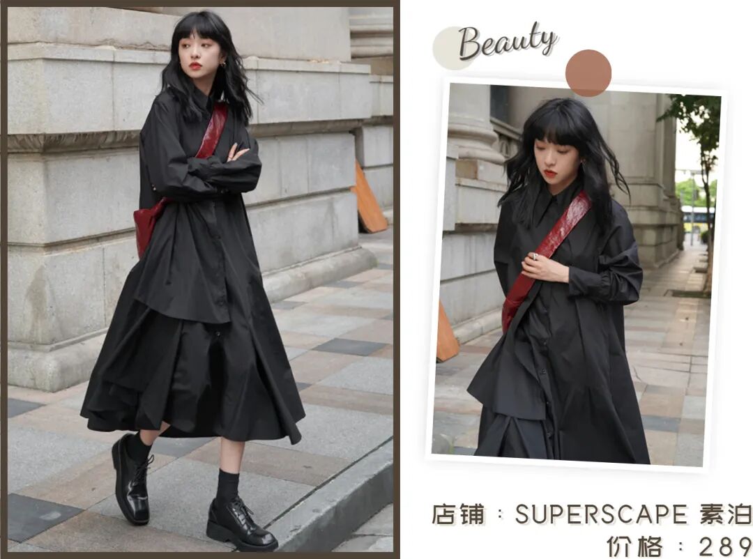 衬衫裙也是不错的选择,这件不规则的黑色解构衬衫裙也太好看了吧!胸前不对称的单边搭片,设计感十足,整件衣服层次感满满,低调又吸睛~
