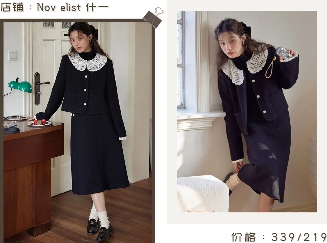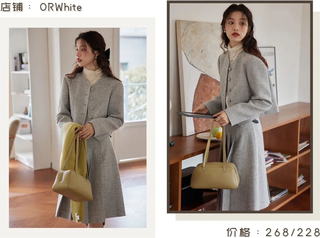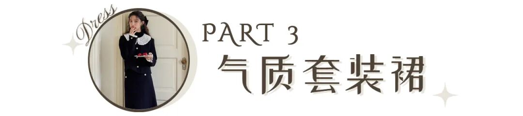 这种成套的裙装是有亿点点优雅在身上的,上身就是财阀大小姐既视感,完全穿不腻,我愿称之为秋冬必备贵气感穿搭!