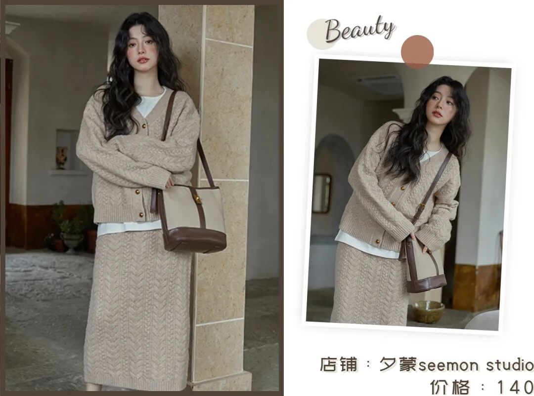 不费力的时髦感说的就是针织裙套装吧,简约又高级,浅卡其简直就是冬日的温柔密码,气质满分,约会穿它就对了!