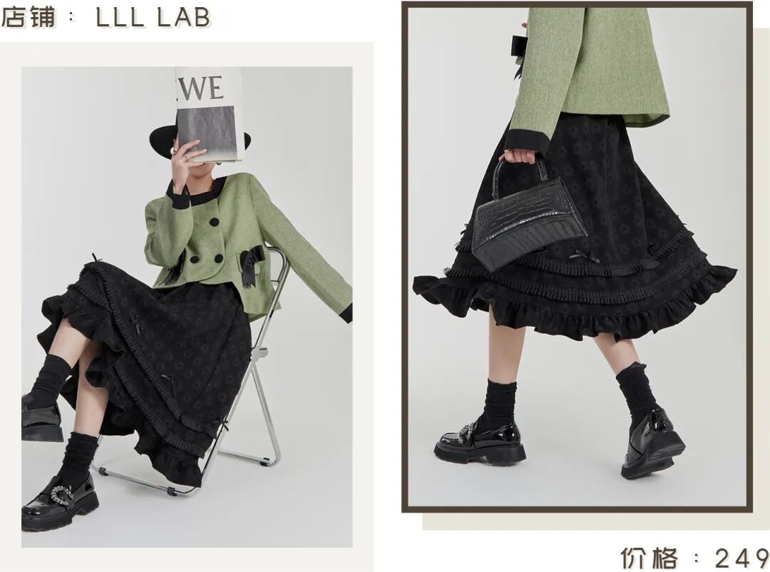 黑色半裙简直长在了我的审美上!下摆的花边设计好加分,简直就是秋冬穿搭届的优等生!