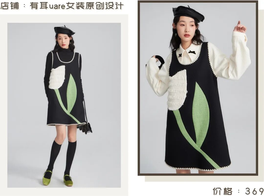 一眼就爱上的款式,胸前的郁金香拼接图案非常吸睛,做工精致,满满的高级感。
