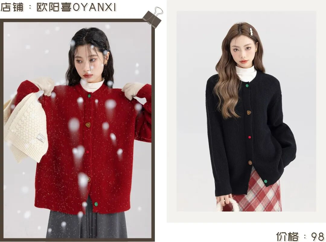 新年怎么能少得了红色呢?这件红色针织开衫就非常nice,圆领设计经典百搭,彩色小圆扣可爱又减龄!觉得全红太高调,那就换成黑色针织+红色格纹裙的组合,依旧氛围感十足~