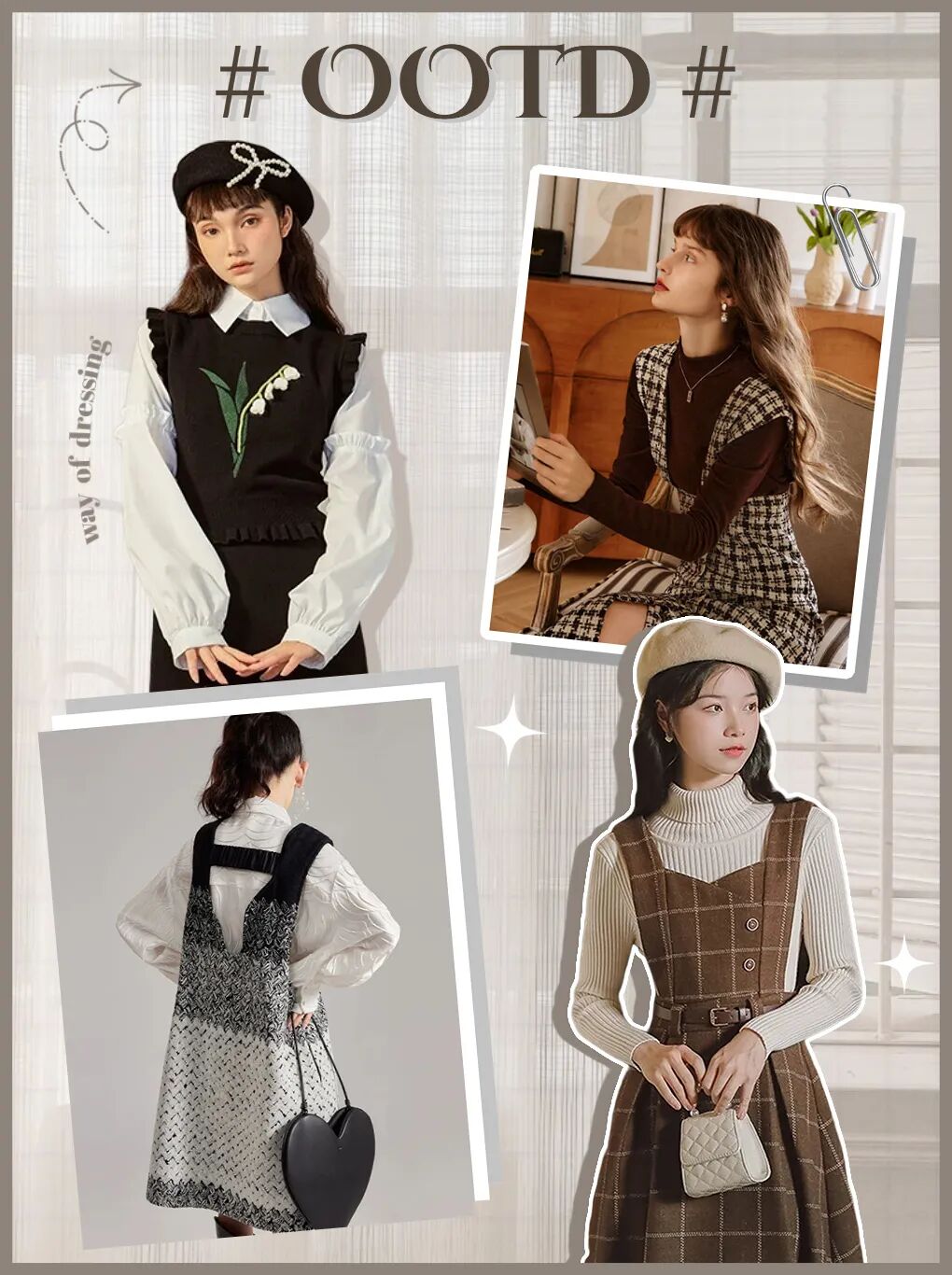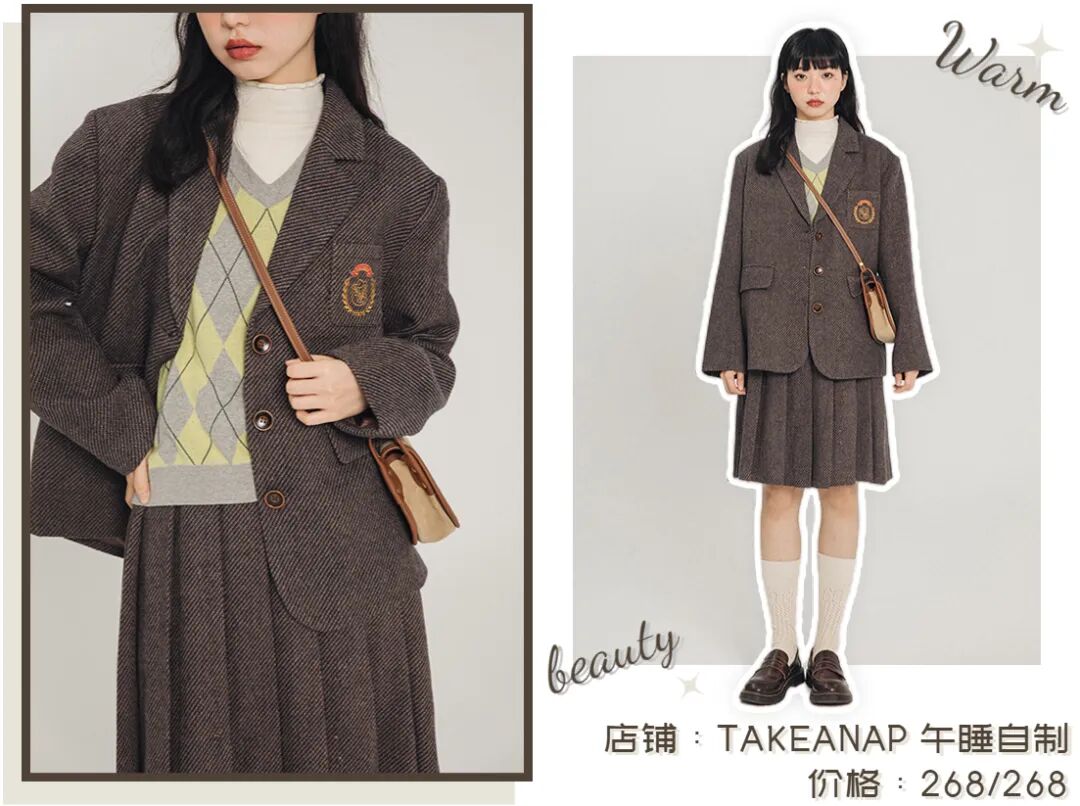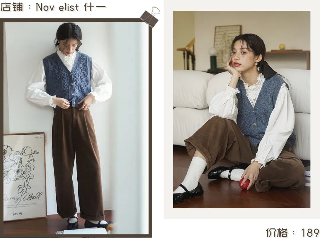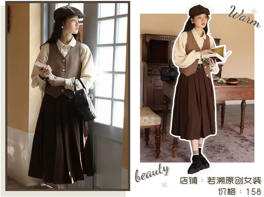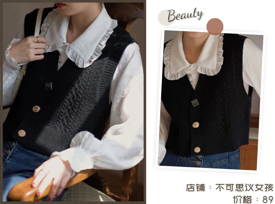 要说复古风,那还是得看毛呢马甲,文艺中还带着点帅气,秒get英伦学院风穿搭~