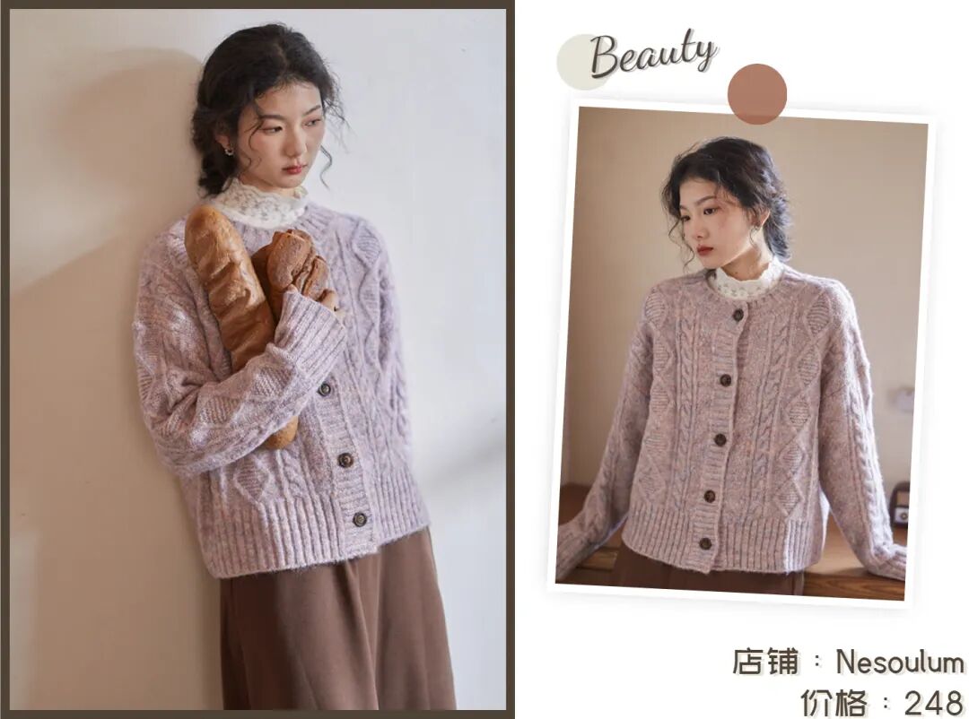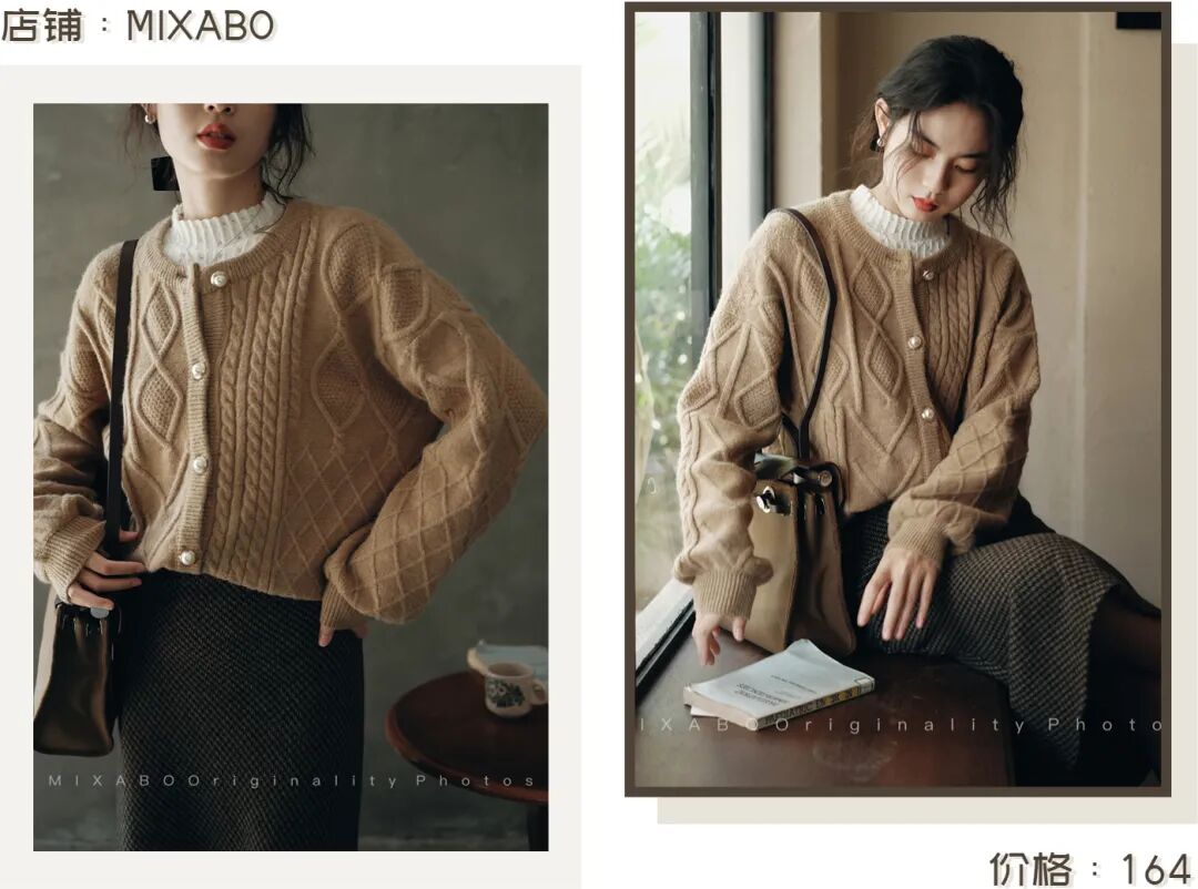 自带暖意的卡其色针织衫,和秋冬的适配度好高啊,绞花针形的立体织法,慵懒又复古,宽松的版型对身材的包容性很好~