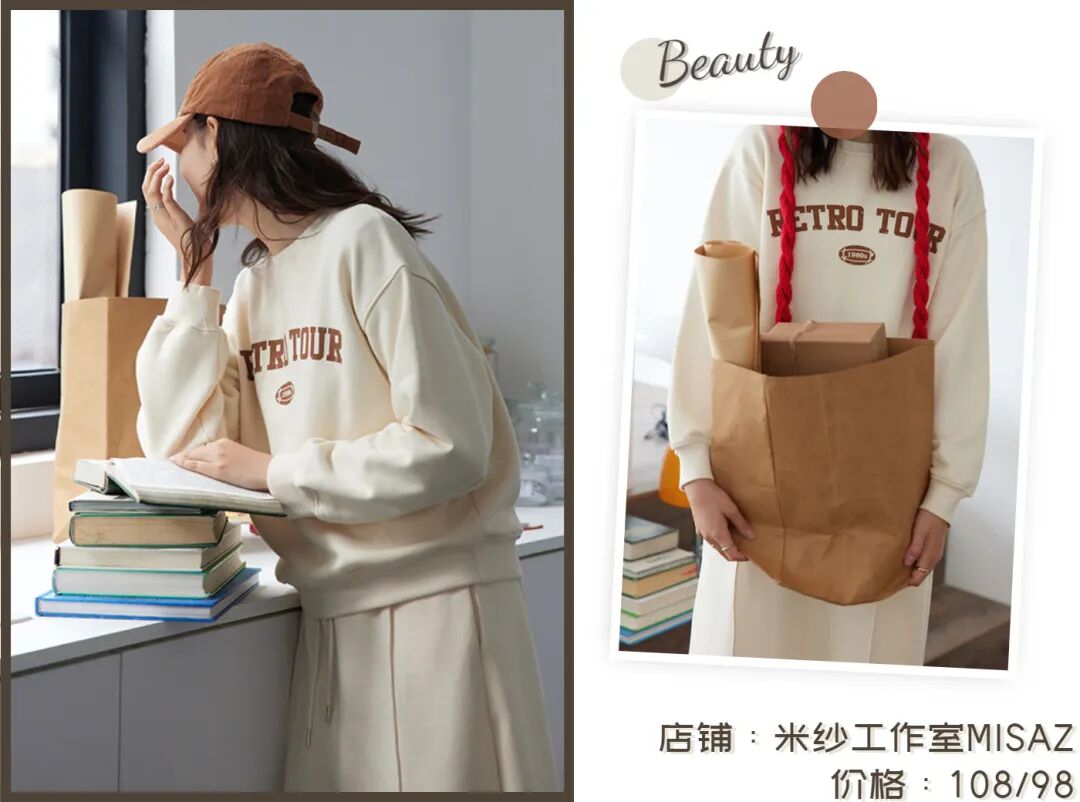 卫衣+卫裙的组合也很nice,衣服胸口的撞色印花和裙子上的抽绳完美呼应,分分钟穿出休闲的时髦感~