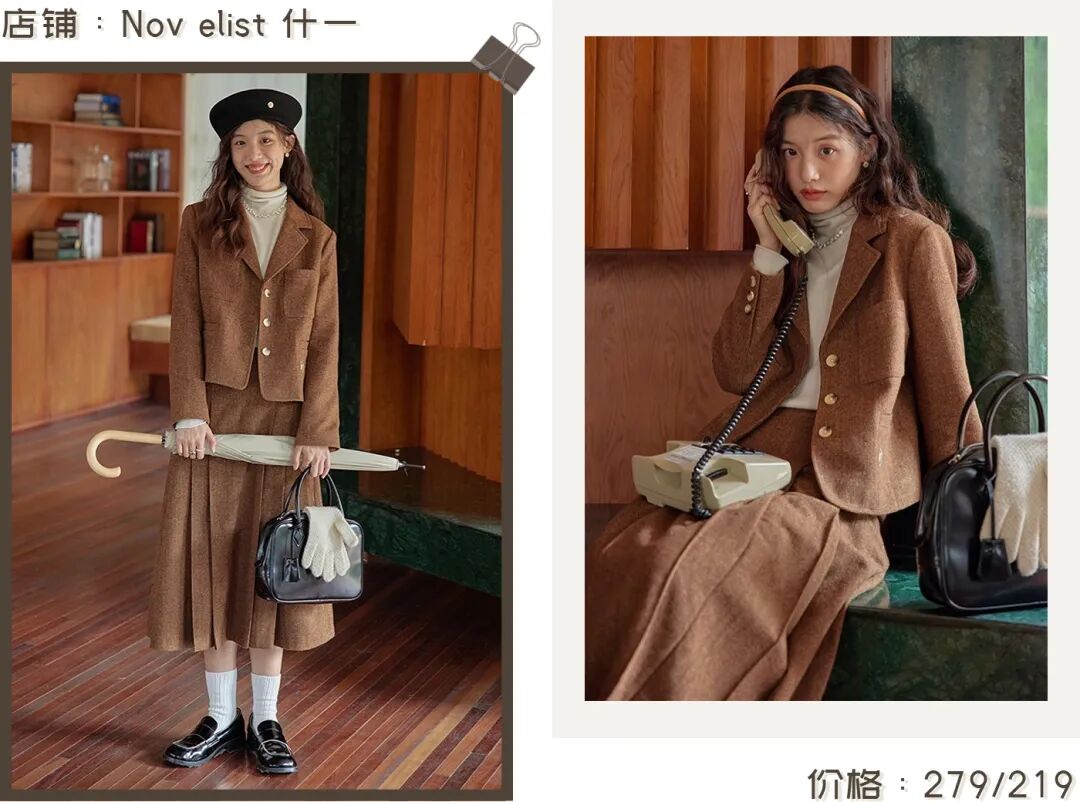 西装套裙简直就是穿搭届的优等生,前段时间大火的知识分子风这不就来了!气质又复古,微阔的版型百搭不挑人,裙子的长度也很适中,小个子女生也能轻松驾驭!