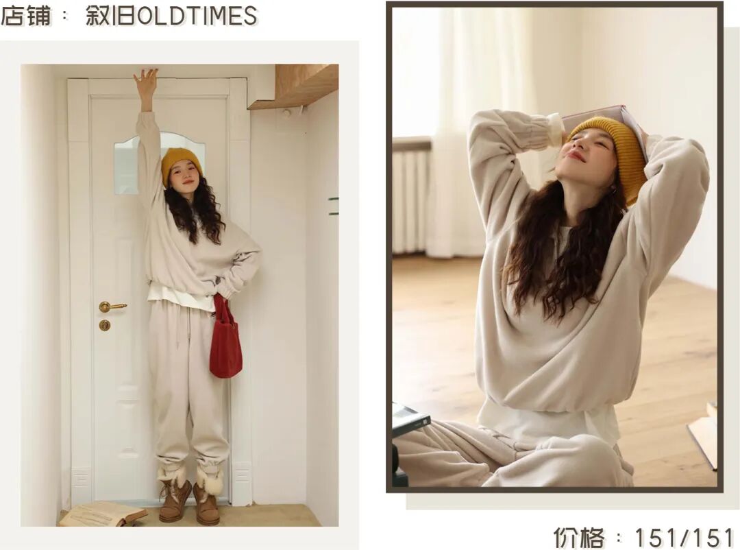 这种灰色卫衣套装就没什么好多说的了,基础百搭,随便穿穿就很好看,舒适度非常高,居家外穿都ok~