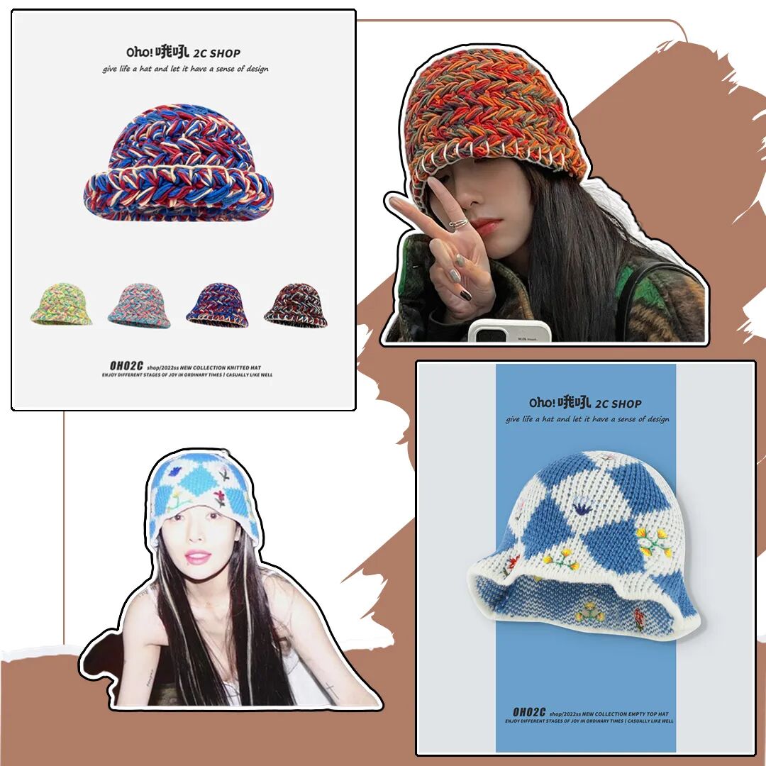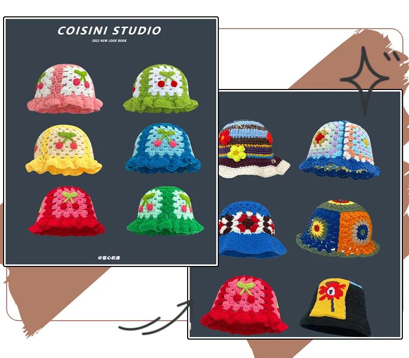 镂空花朵针织盆帽很有童年趣味,最近在ins上炒鸡🔥。