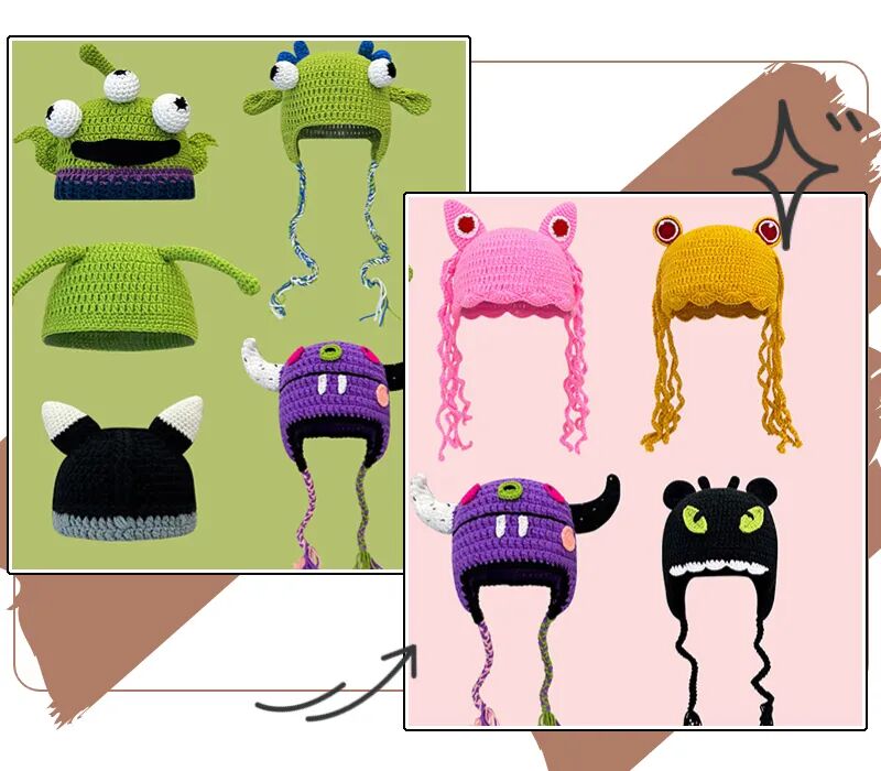 还有搞怪的毛线帽造型很可爱,可以给家里的小孩子买个~