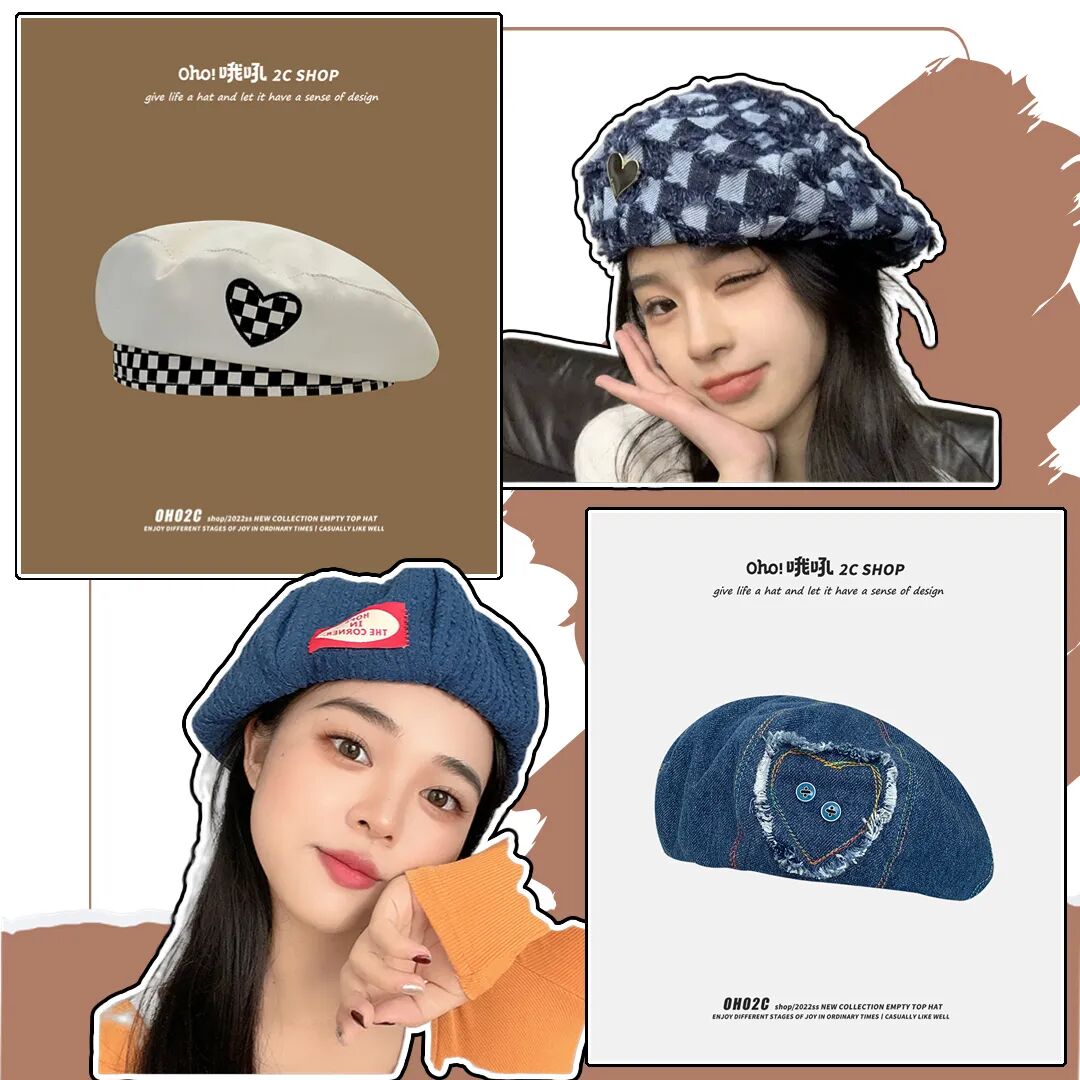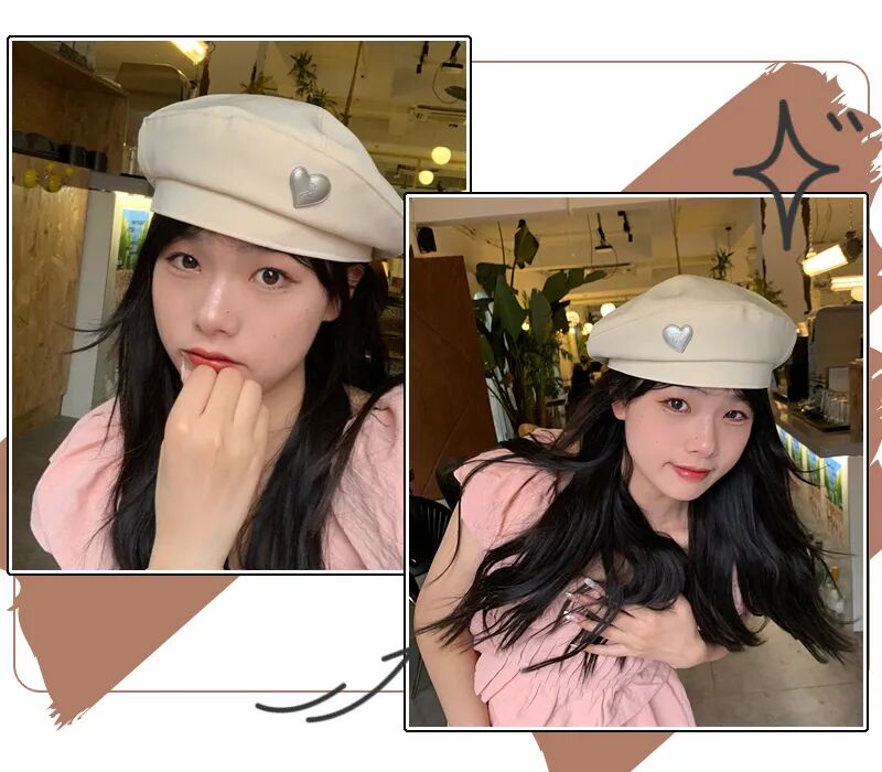 纯色+小爱心点缀的贝雷帽请买!甜妹必备!