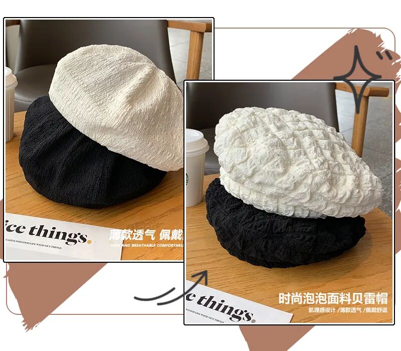 薄款肌理贝雷帽很文艺小清新范儿,适合搭配一些小裙子~