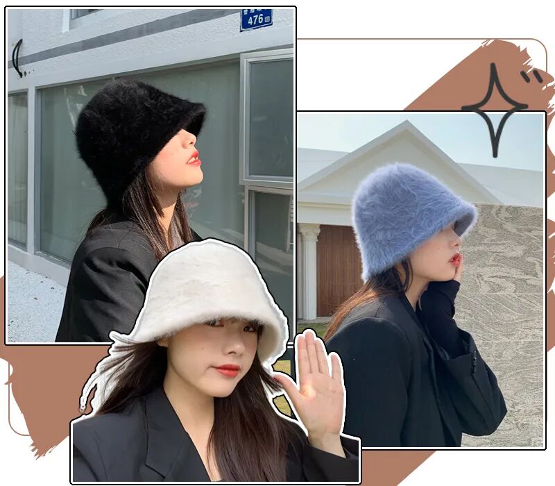 毛毛材质的水桶帽依旧是早春的新宠,可爱又温暖~