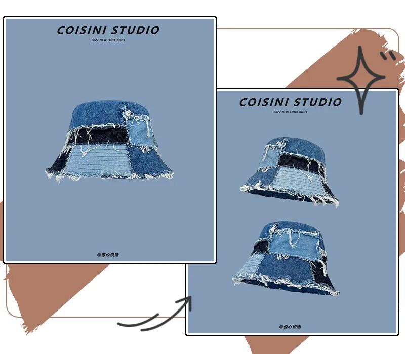 拼接牛仔渔夫帽很有old school的感觉,潮酷又百搭。