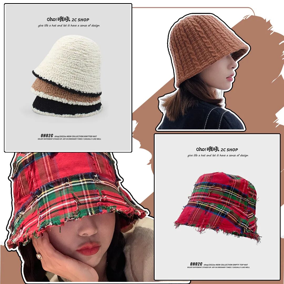 还有水桶型的渔夫帽简直是大头星人的福音,不仅不显头大还能显脸小~