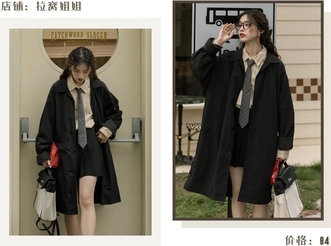 黑色风衣的穿着率也很高,干净又利落,上身气场十足,百搭不挑人~