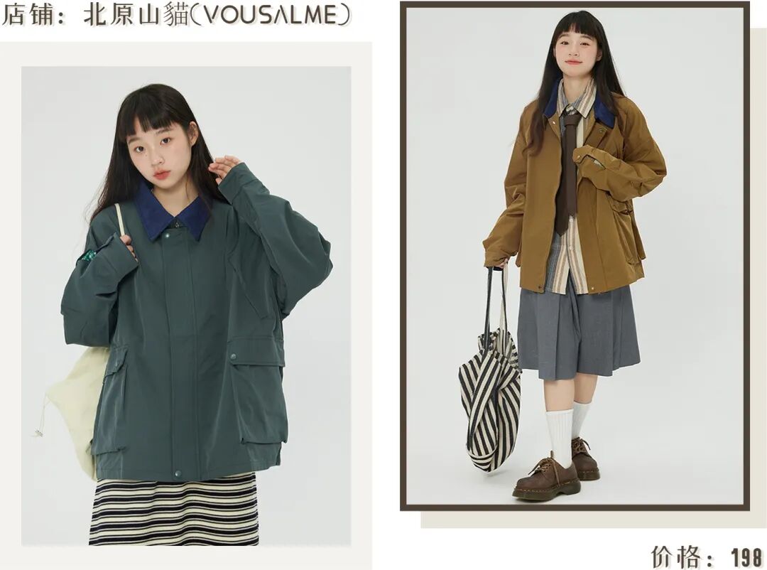 除了运动风,工装夹克也是不错的选择,撞色的翻领设计非常耐看,时髦又减龄,很适合学生党和初入职场的姐妹。
