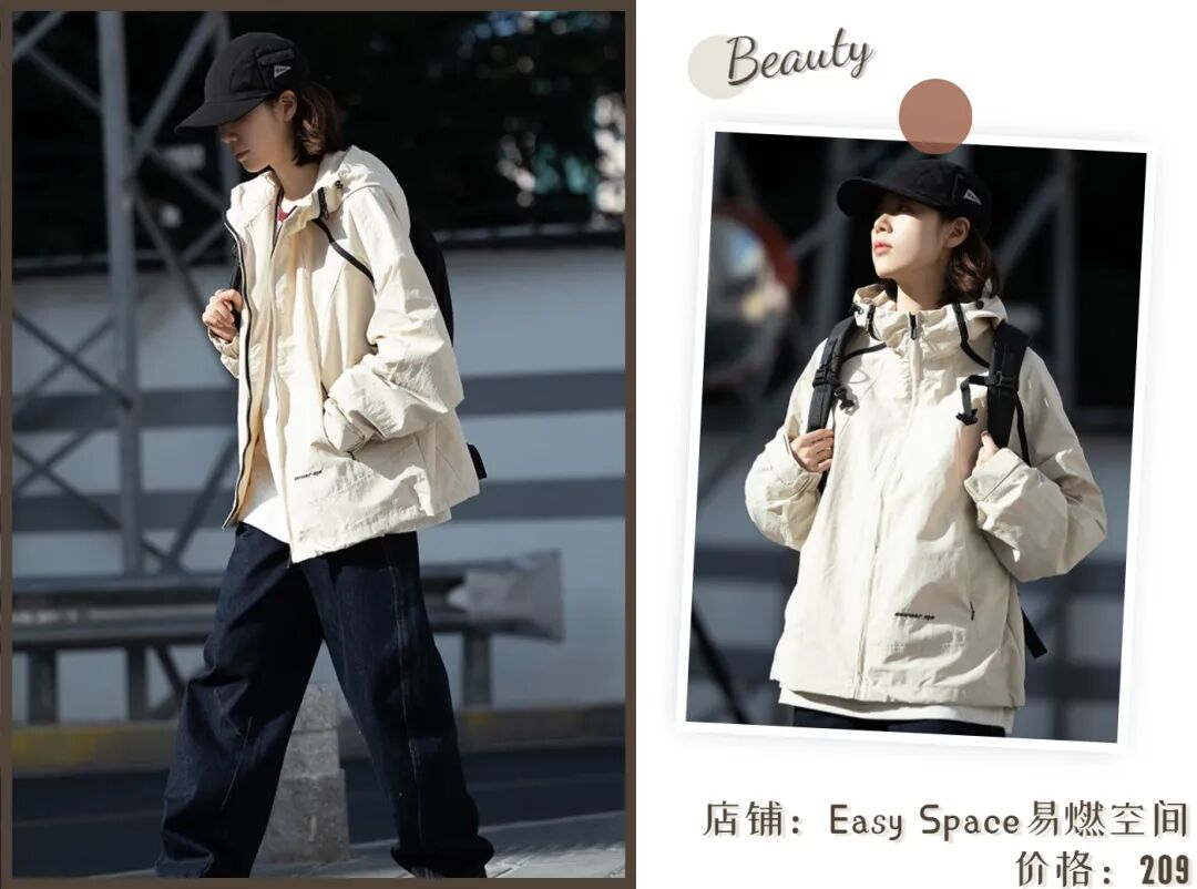 没有人可以拒绝极简穿搭带来的氛围感!米白色冲锋衣+黑色休闲运动裤的组合,简单大方,飒气十足!