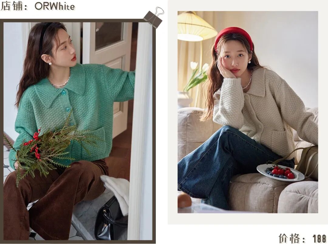 怕针织衫穿着显胖的姐妹,快快看过来!纹理感编织面料,可以很好地削弱掉针织衫的厚重感,再加上polo领的加持,显瘦效果堪称一绝!