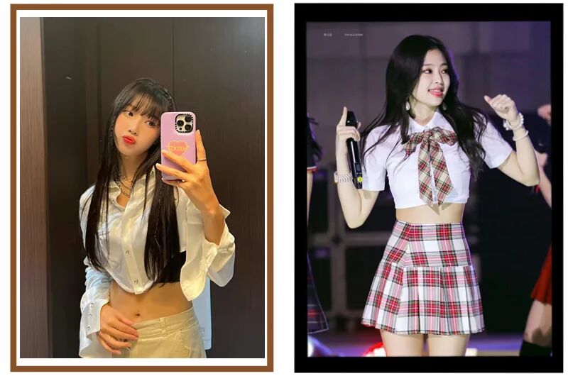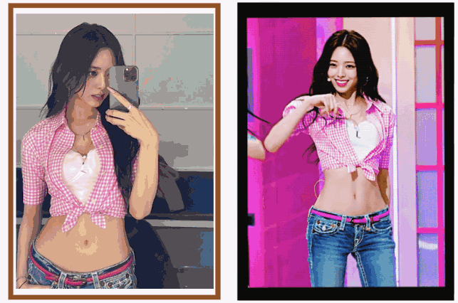 Yuna这身吊带+粉色格纹衬衫+低腰裤,米死谁了!