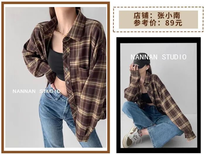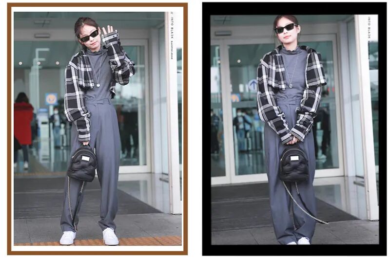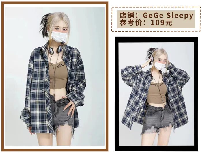 或是用短格纹衬衫来分割身材,适合内搭颜色一致不好区别腰线的时候使用👌