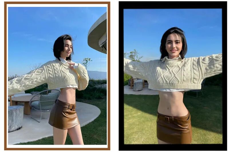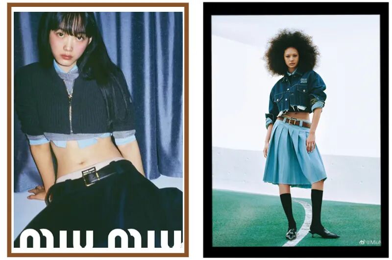 根据上短下长的穿搭来说,下身搭配长裙很有miumiu范儿,还特别显腿长。