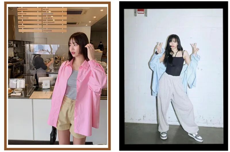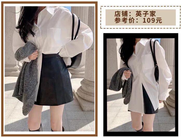 oversize版型的白衬衫拿来当外套也十分不错,内搭crop短上衣or修身小吊带,或者直接match长裙,纯欲拿捏。