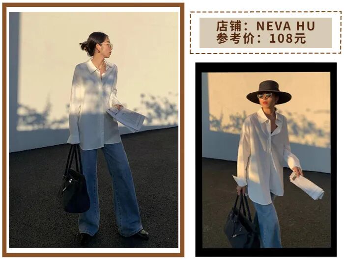 白衬衫挑对版型很重要,硬挺、正肩的白衬衫能很好地修饰身材,单穿也能散发清爽干净的气质~