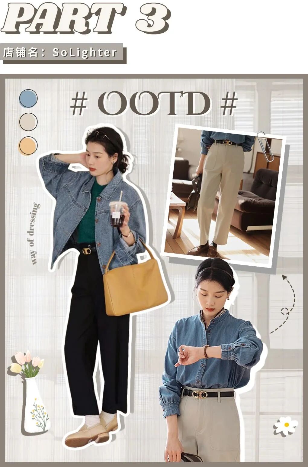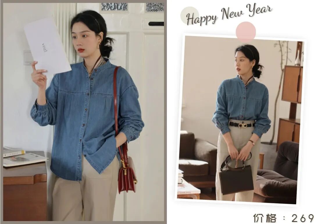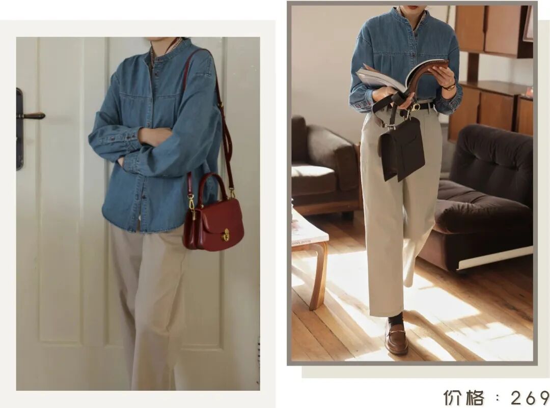 接下来的这两组look非常适合上班通勤,简约低调又气质!这种基础款的牛仔衬衫,应该已经人手一件了吧?复古又显白,怕冷的话,里面还可以叠加一件打底衫,实穿性非常高!