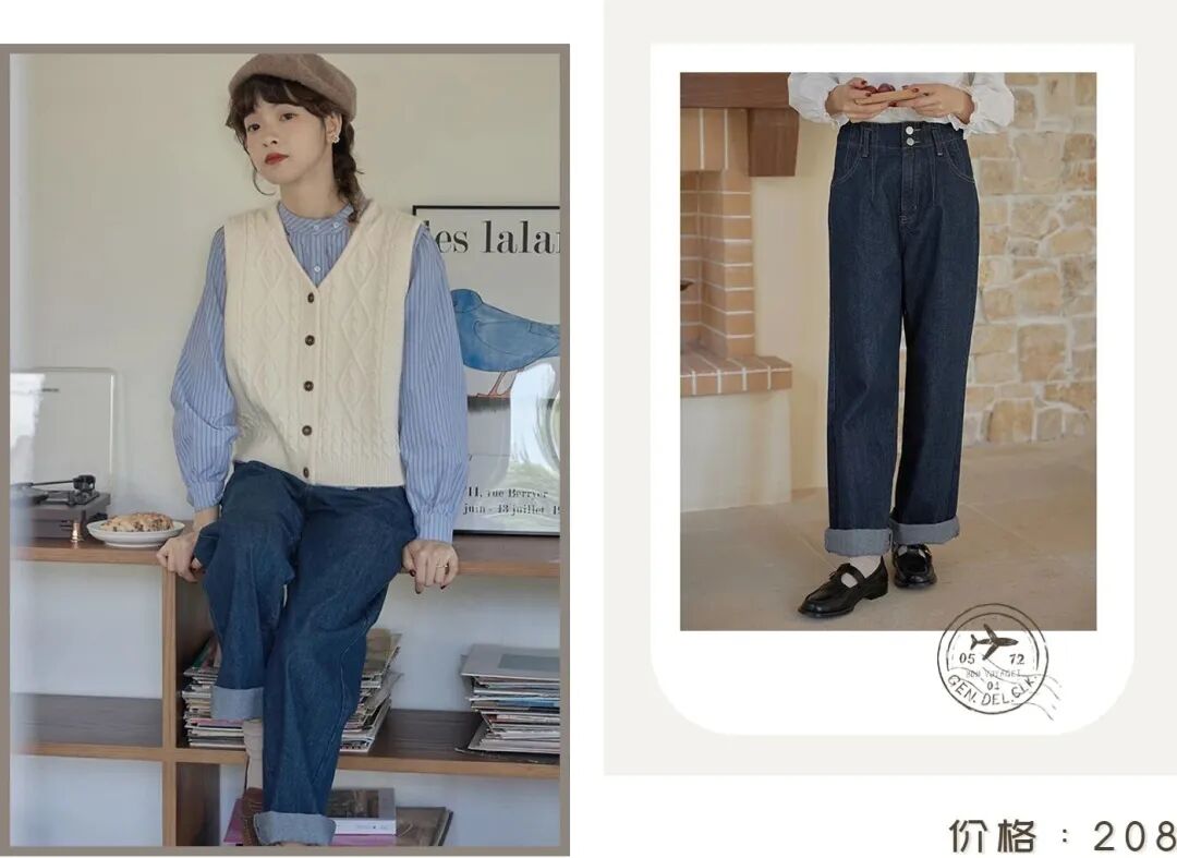 再搭配一条衬衫同色系的深蓝色牛仔裤,复古氛围感一整个拉满!高腰直筒设计,遮肉还显高,梨形身材的姐妹也可以轻松驾驭!