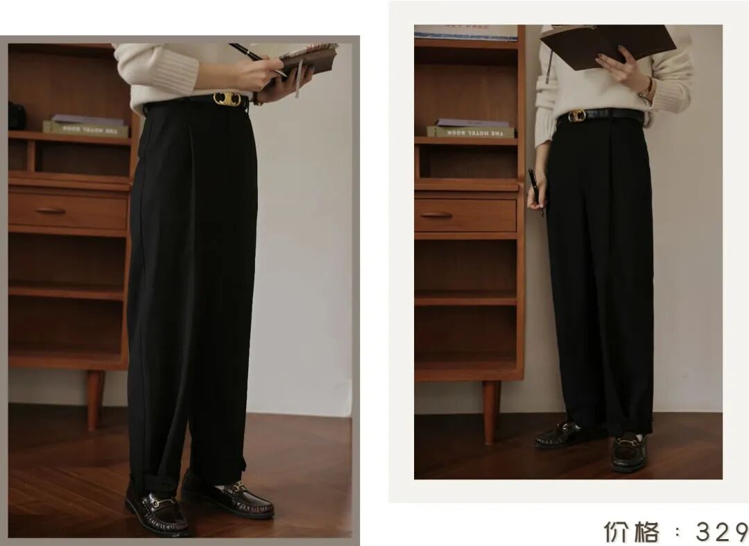 想要正式一点的话,下面可以搭配一条直筒九分裤,利落不拖沓,非常修饰腿型,对胯宽的修饰效果也很棒,胖女孩也可以轻松驾驭。
