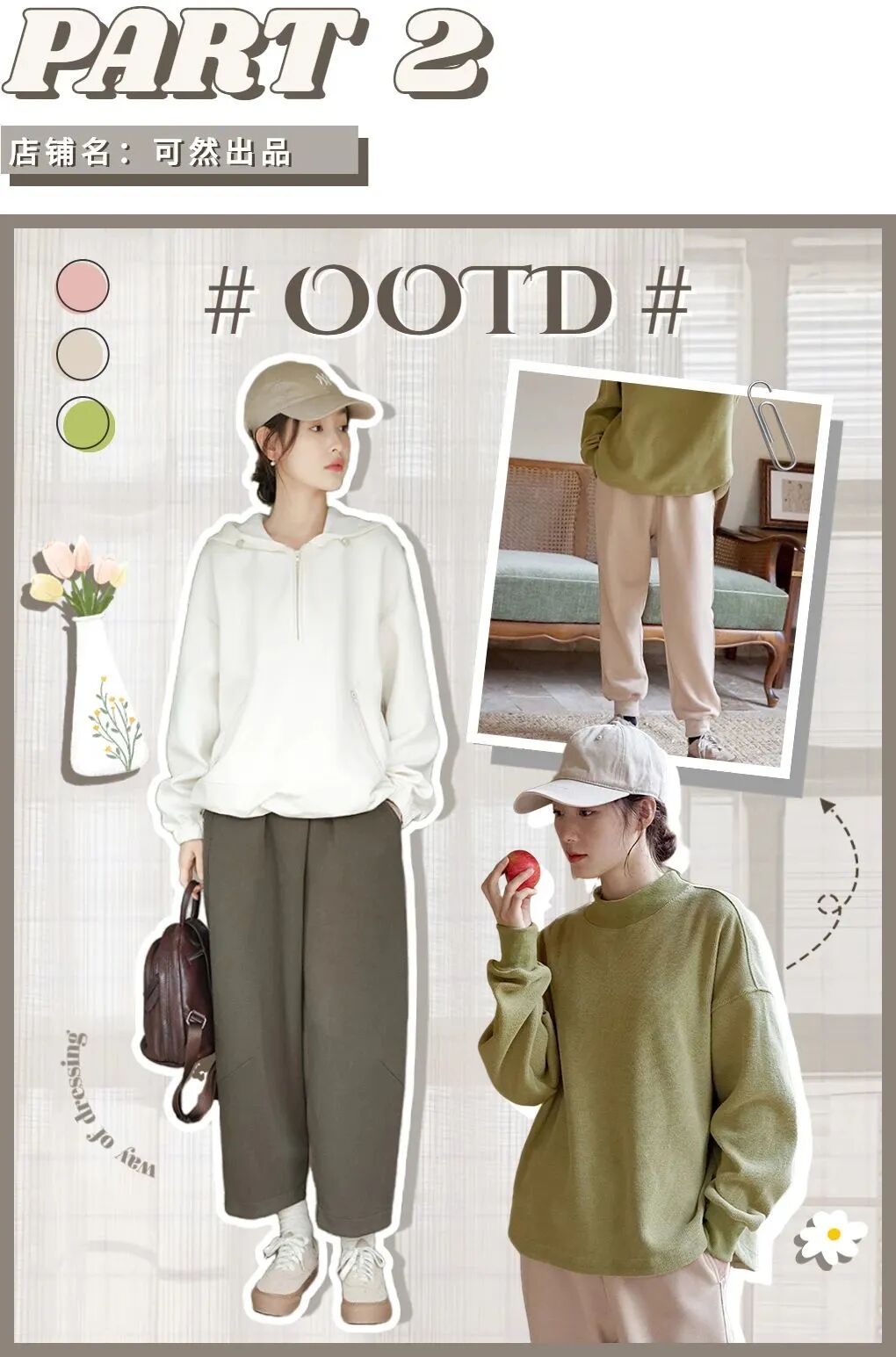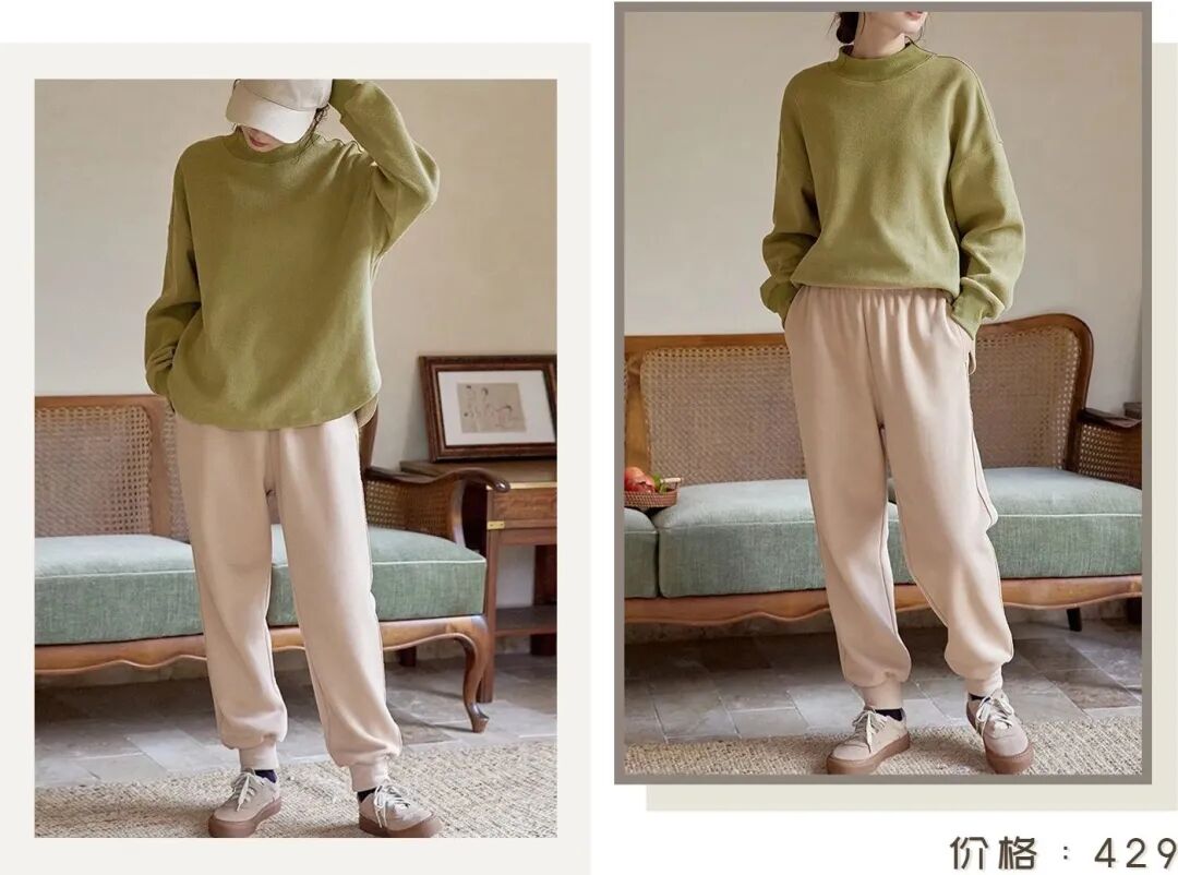 喜欢休闲运动风的姐妹赶紧看过来,这两套look属于你们!这件芦苇绿卫衣我好爱,简简单单的,基础又百搭,太适合春天了!