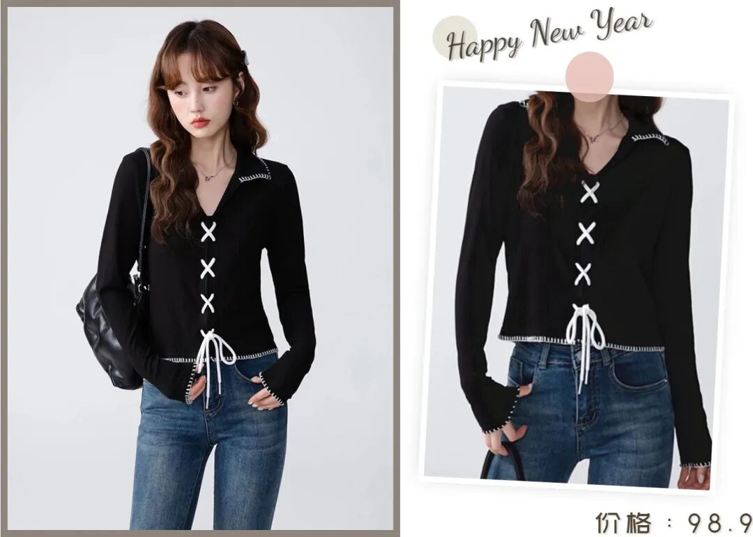 最后两套look精致又美腻,说薄款针织是春天的标配,应该没人反对吧,黑色+小V领设计简直就是显瘦的代名词,不管是日常通勤,还是出门逛街,都很适合~