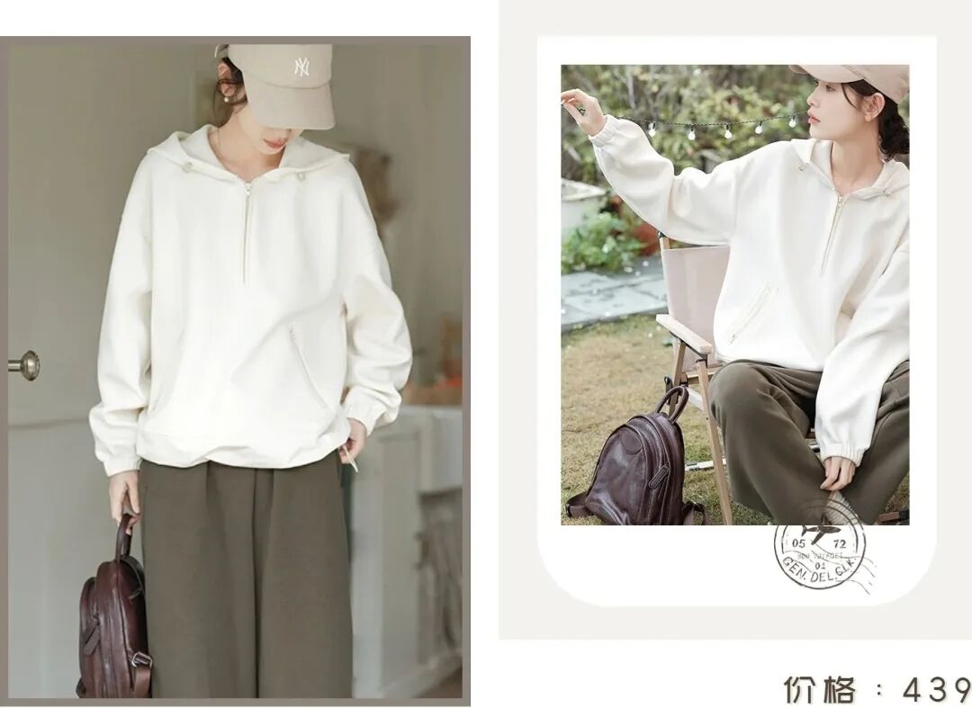 清清简简的连帽卫衣,也是不错的选择,温柔的米白色十分百搭,舒适又减龄,分分钟穿出休闲的时髦感,单穿、内搭都很好看~