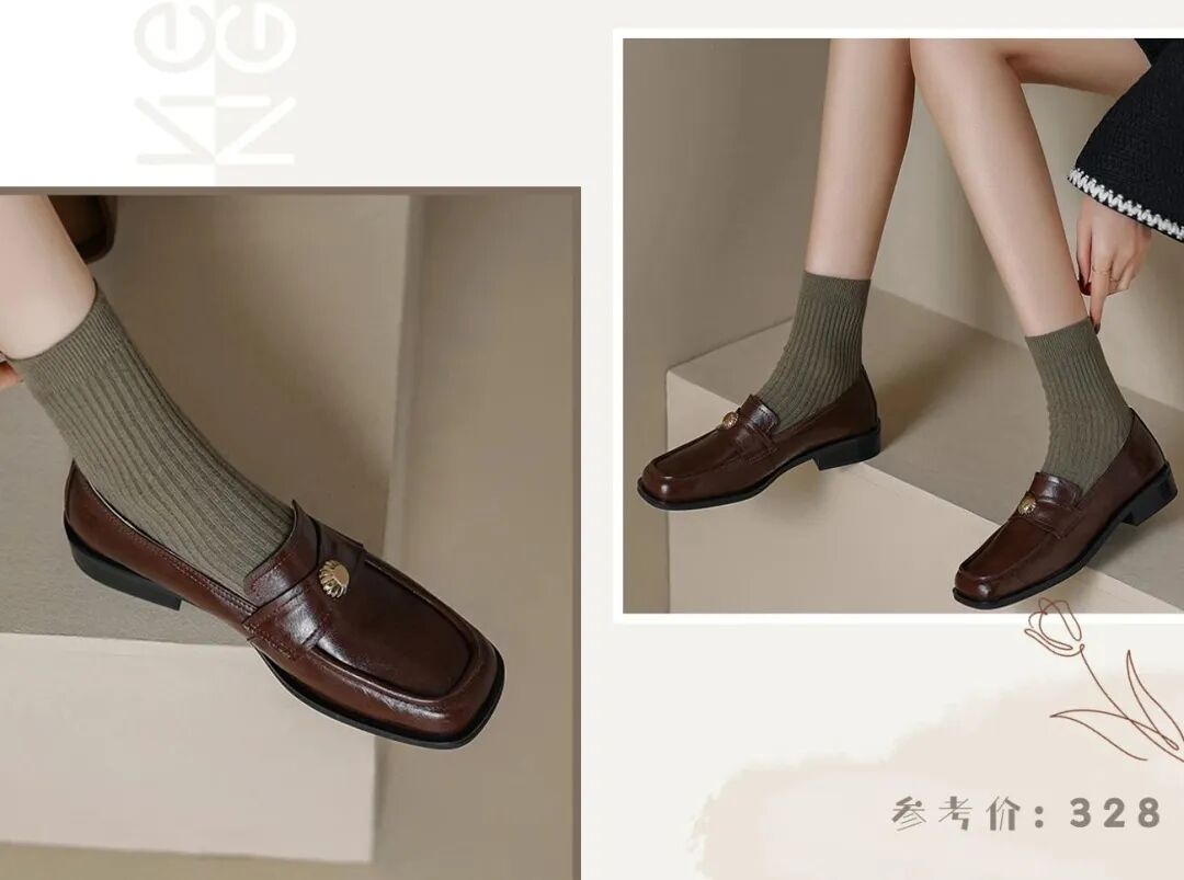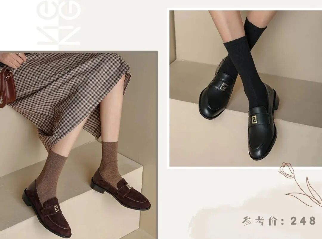 春天就是露脚踝的季节呀,这种后跟可踩的乐福鞋,方便的同时,还非常显脚瘦!棕色绒面高级复古,哑光黑色经典大气,实在是太nice了~