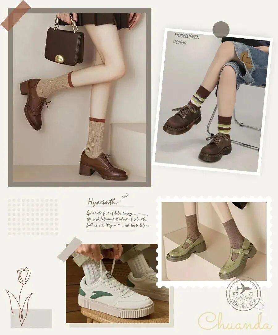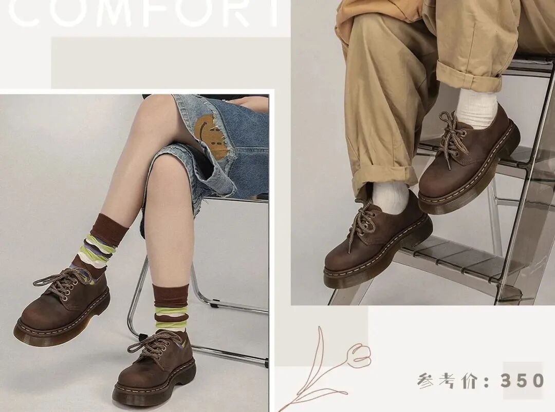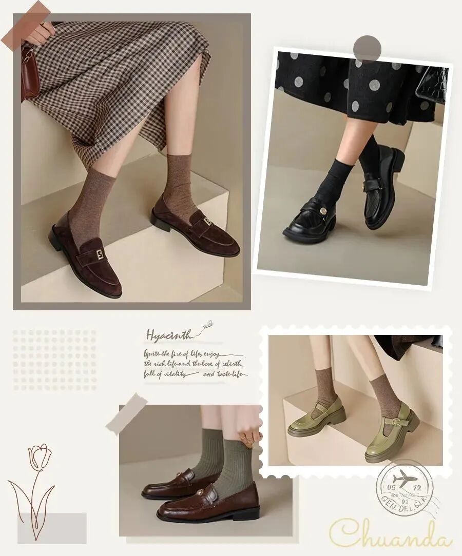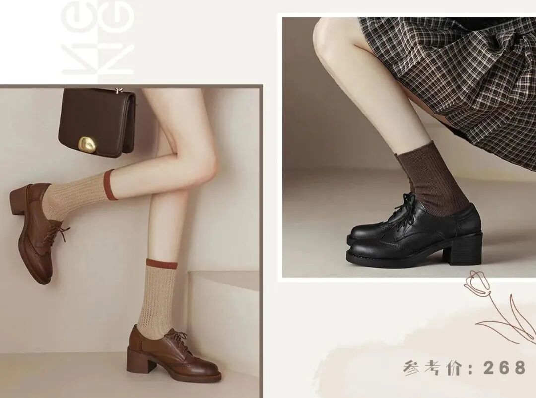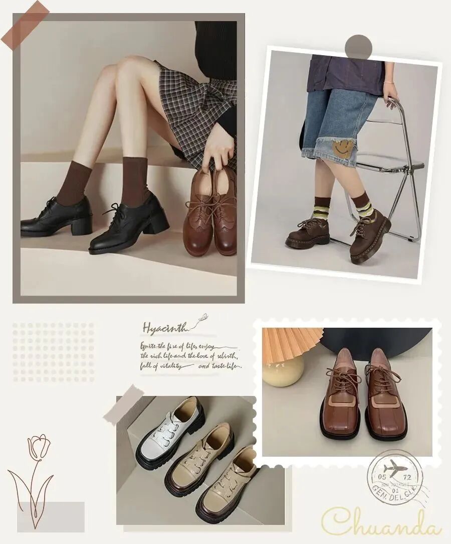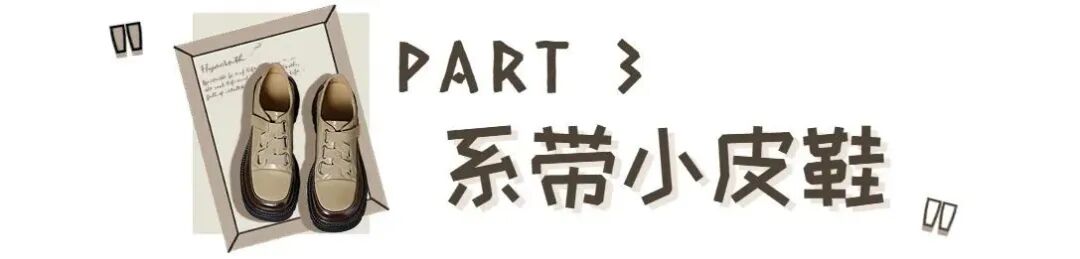 英伦风的系带小皮鞋也非常nice,复古韵味十足,配上各种各样的袜子,完全穿不腻~