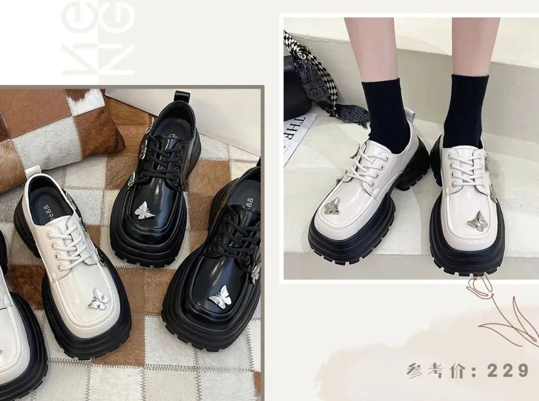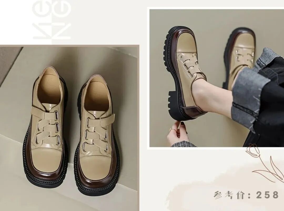 觉得系带太麻烦?那就试试这双厚底小皮鞋吧,系带造型的魔术贴设计好独特,让人眼前一亮,拼色造型让简约的鞋面不再单调,经典不过时!