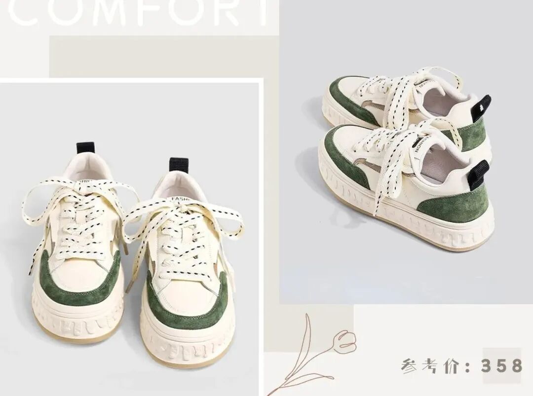 觉得纯白太单调,那就试试拼色小白鞋吧,白绿配色真的好适合春天,复古又清爽,绿色控千万不要错过~