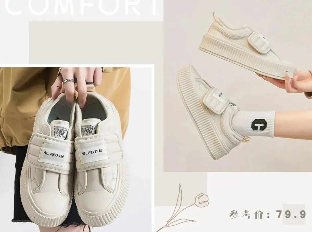 追求性价比的姐妹,可以看看飞跃的小白鞋,魔术贴设计好贴心,穿脱起来超级方便,真懒人福音!